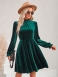 Aksamitna Sukienka Damska Burgundowa Z Długimi Rękawami I Okrągłym Dekoltem Mini Sukienki Typu Skater