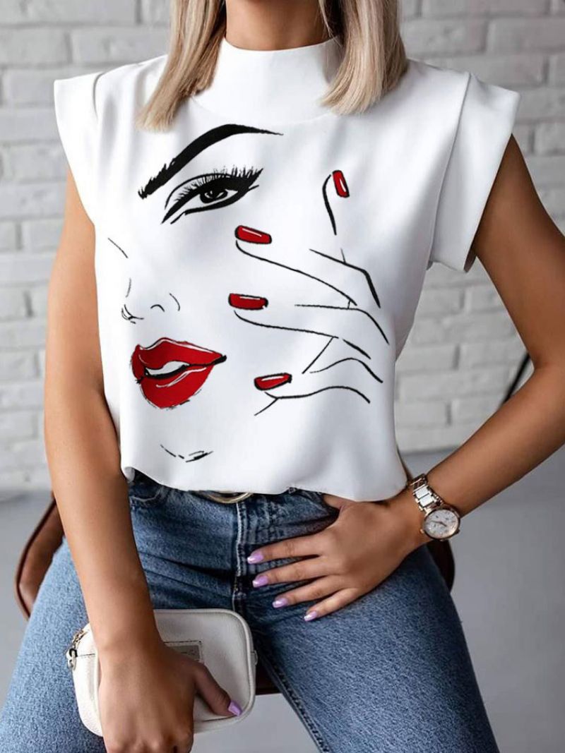 Biała Bluzka Damska Z Dekoltem W Kształcie Biżuteri Na Co Dzień Krótkim Rękawem Nadrukiem Szyfonowym Sumerskim T-shirtem