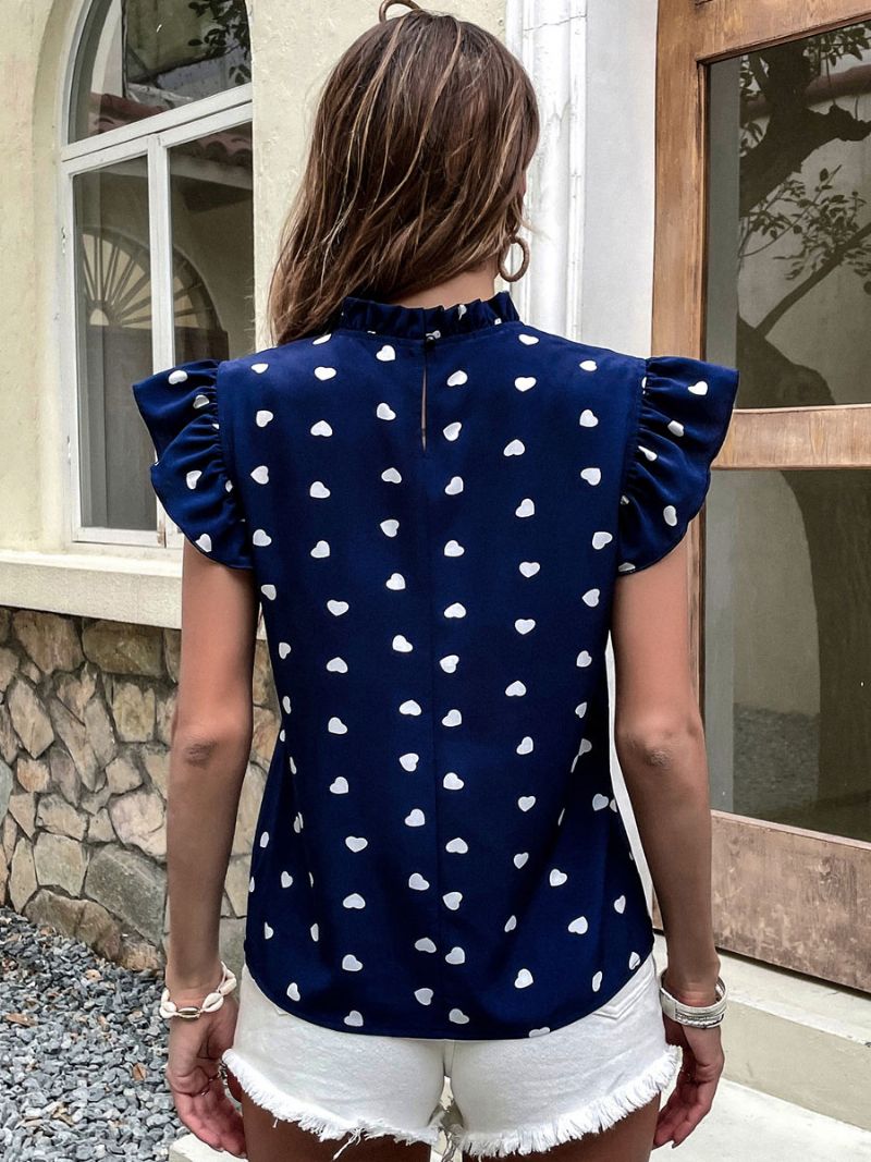 Bluzka Damska Ciemnogranatowa Szyfonowa Zapinana Na Dekolt Nieformalne Guziki Topy Z Krótkim Rękawem