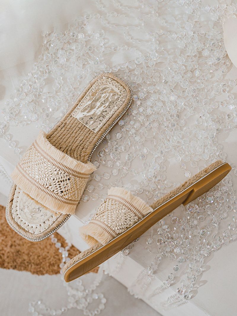 Boho Sandały Wsuwane Damskie Eleganckie Frędzle Z Odkrytymi Palcami