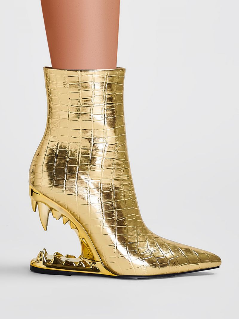 Botki Damskie Na Koturnie W Kolorze Złotym Ze Szpiczastym Noskiem