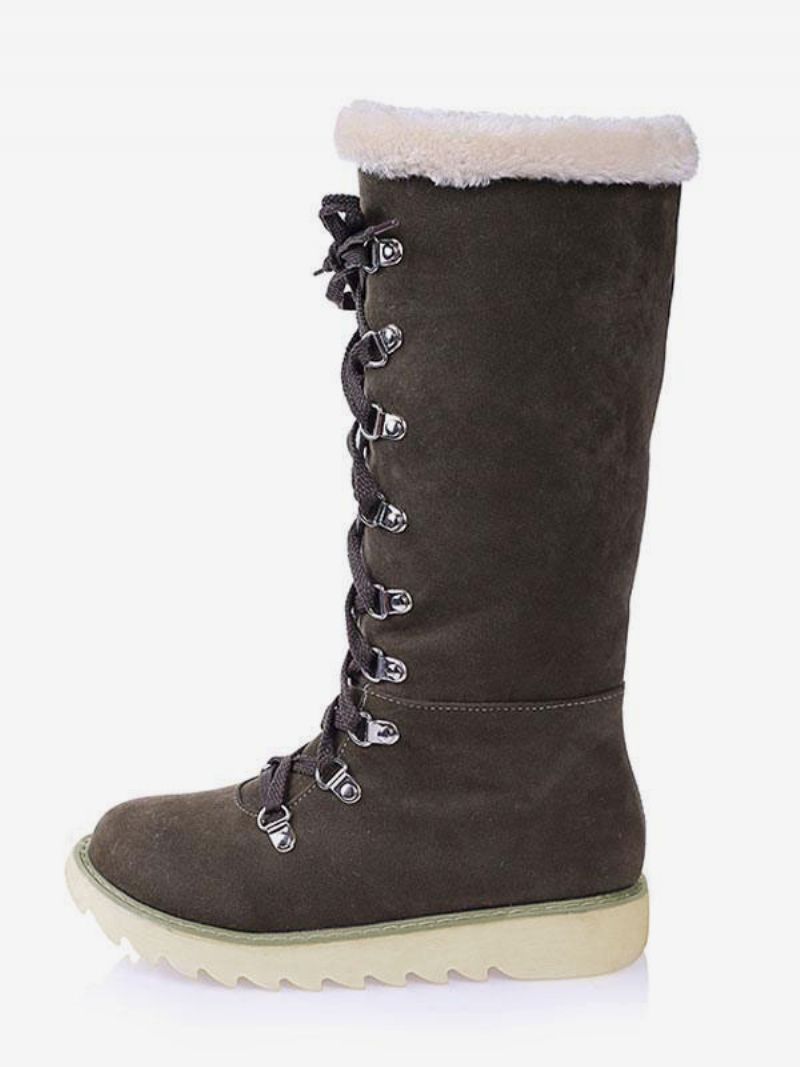 Botki Damskie Zimowe Zamszowe Ecru Białe Okrągłe Noski Sznurowane Płaskie