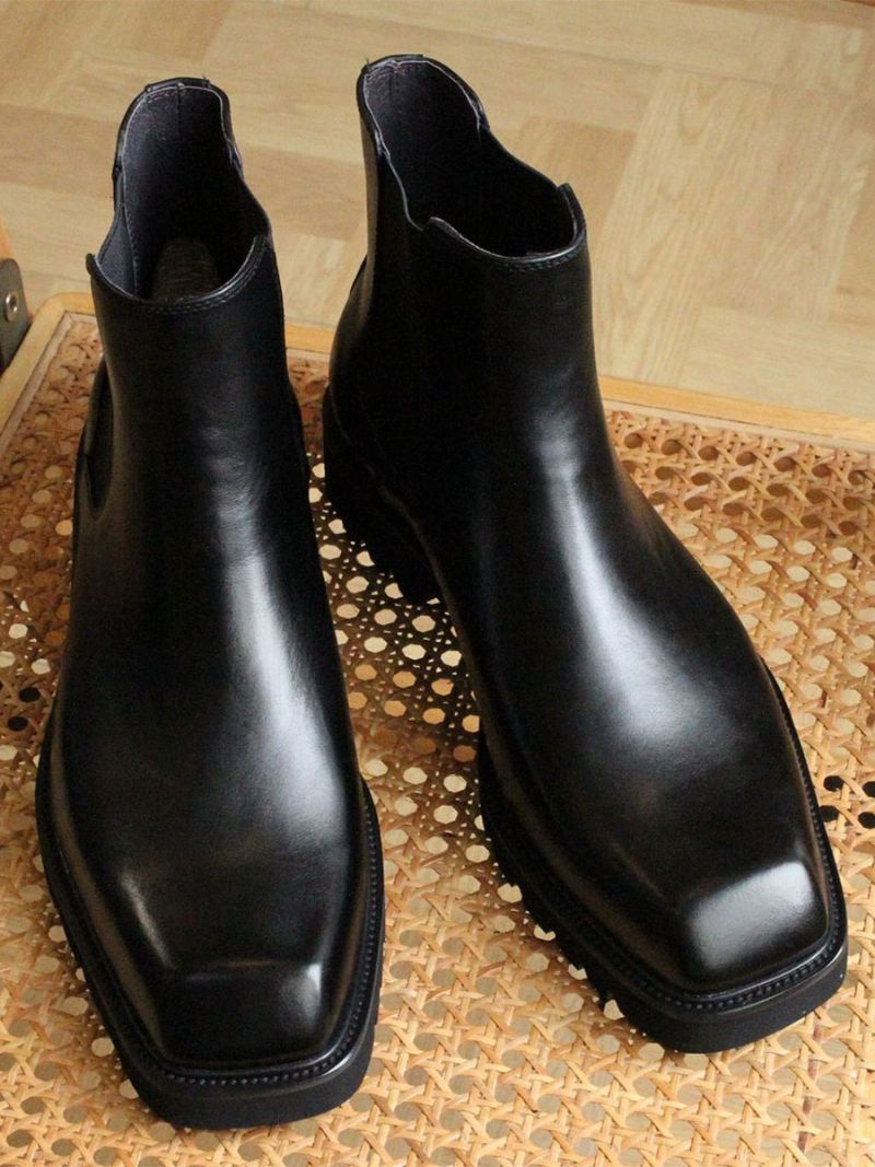 Botki Męskie Chelsea CZarne Buty Na Studniówkę Ze Skóry Bydlęcej Z Kwadratowymi Noskami