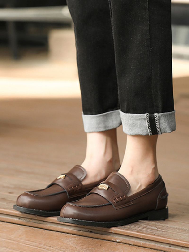 Brązowe Mokasyny Damskie Z Okrągłymi Noskami I Zaprojektowanymi Mokasynami Typu Penny