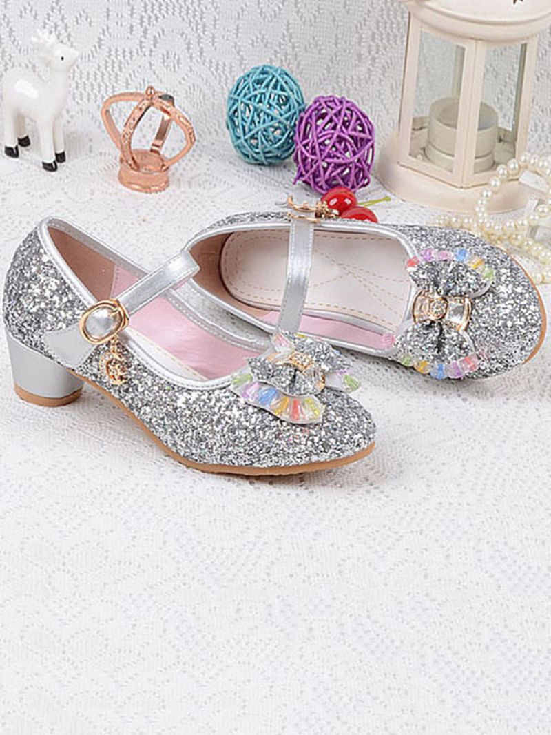 Buty Dla Dziewczynek Z Brokatową Kokardką Mary Jane CZółenka Na Grubym Obcasie