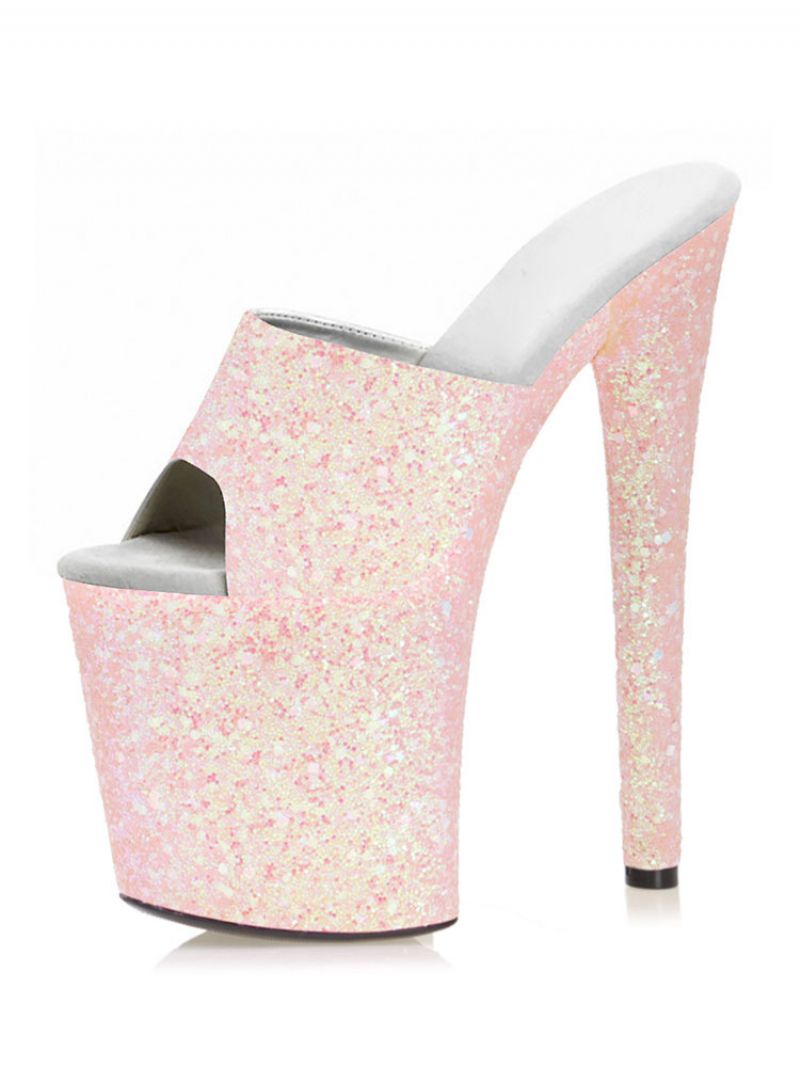 Buty Do Tańca Na Rurze Damskie Seksowne Brokatowe Egzotyczne Szpilki Platforma Sky Wysokie Obcasy Mule W Kolorze Różowym
