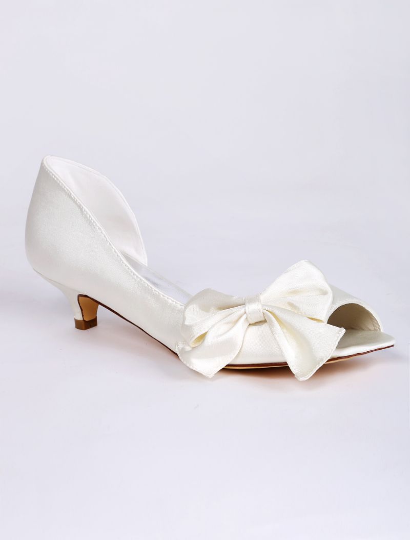 Buty Ślubne Damskie Bow Dorsay Kitten Heels Na Obcasie