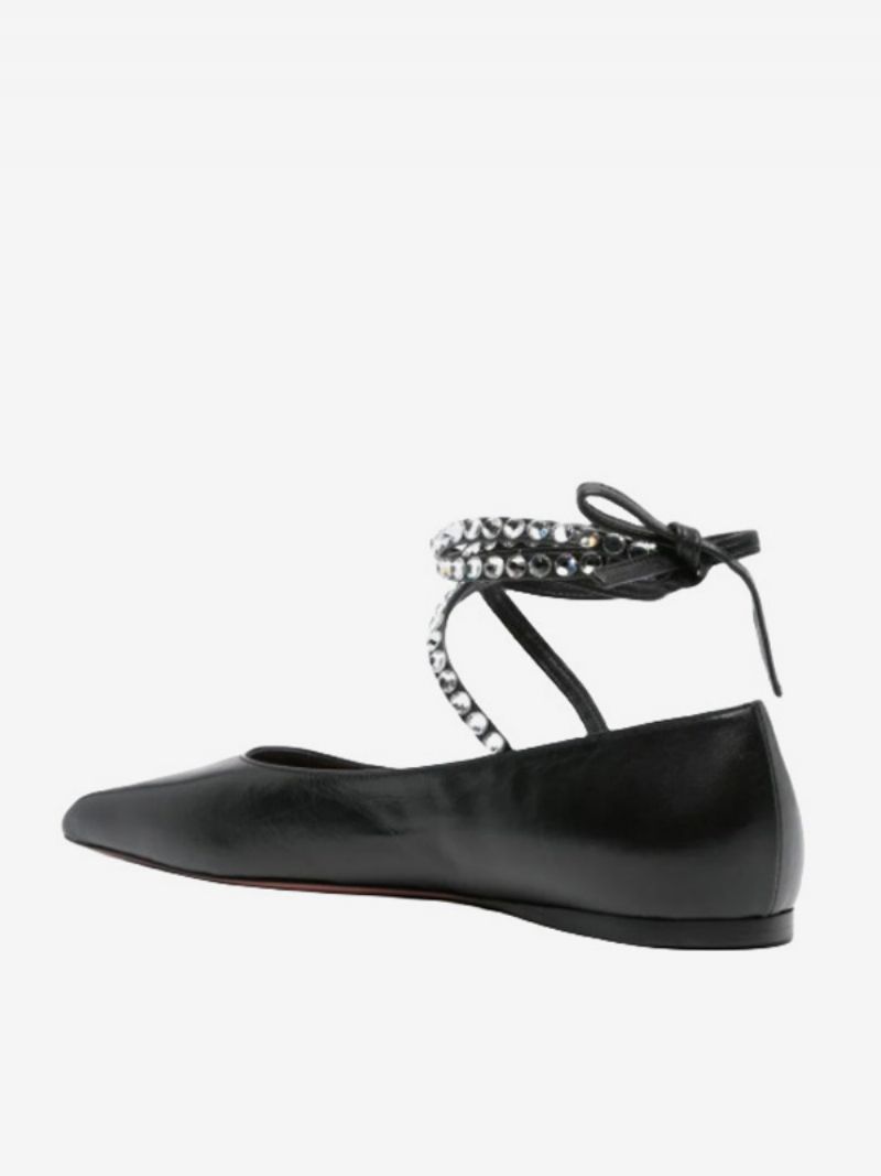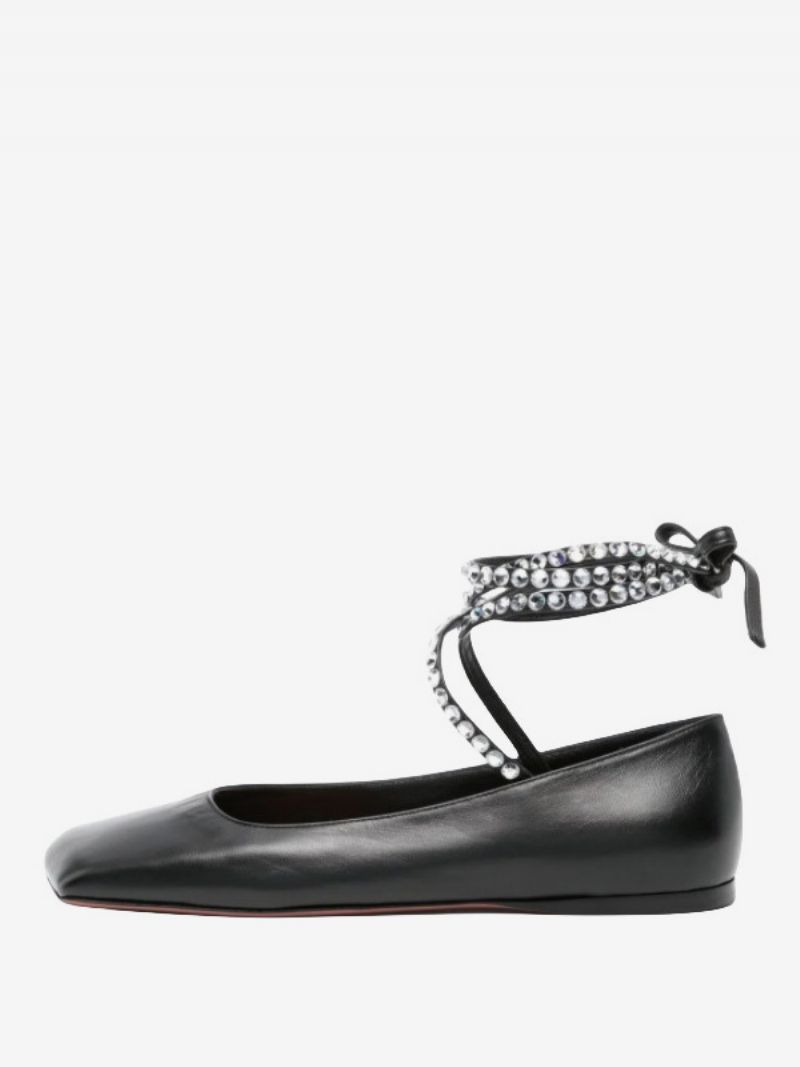 CZarne Baletki Damskie Kwadratowe Noski Dżetów Sznurowane Baleriny