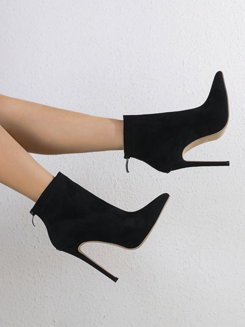 CZarne Botki Damskie Szpiczaste Na Obcasie Ze Szpiczastym Noskiem