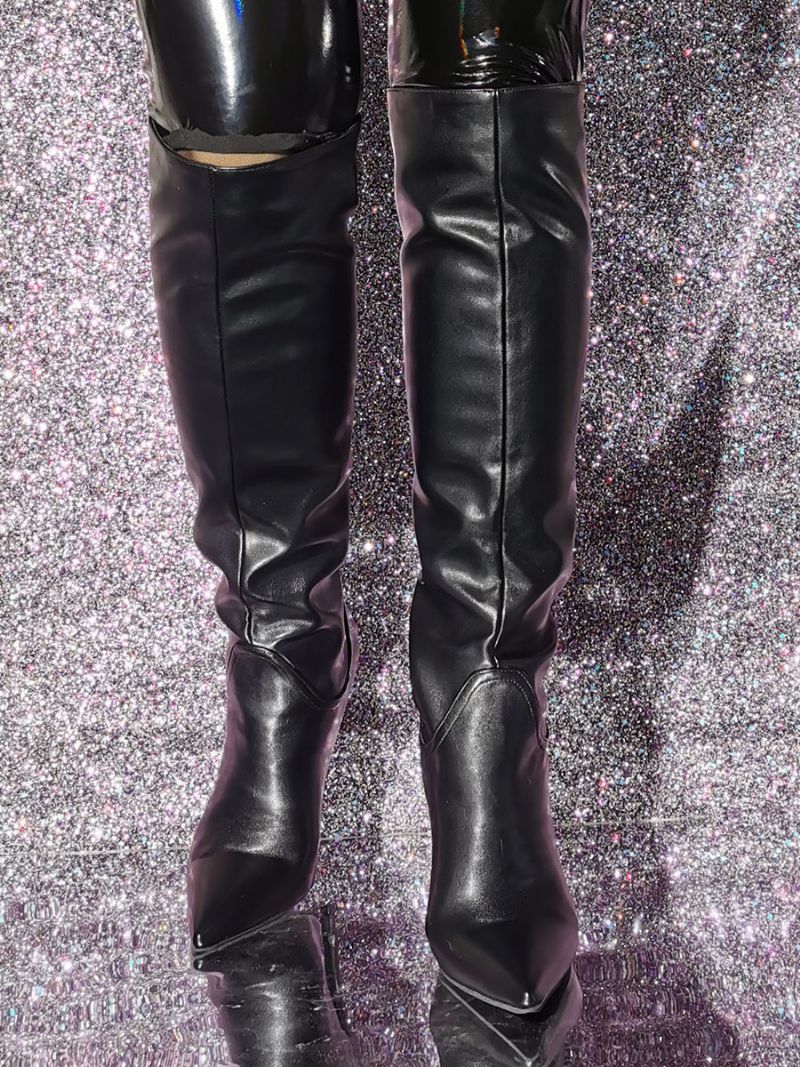 CZarne Buty Do Kolan Damskie Na Szpilce