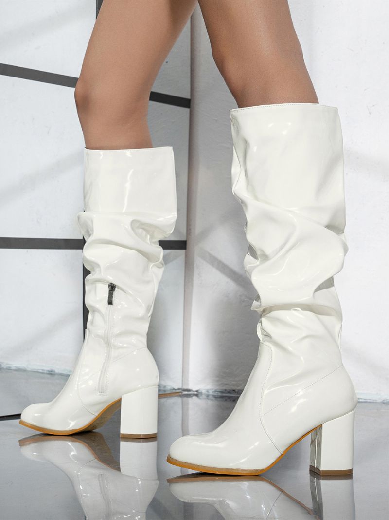 CZarne Buty Typu Slouch Damskie Na Grubym Obcasie Do Kolan