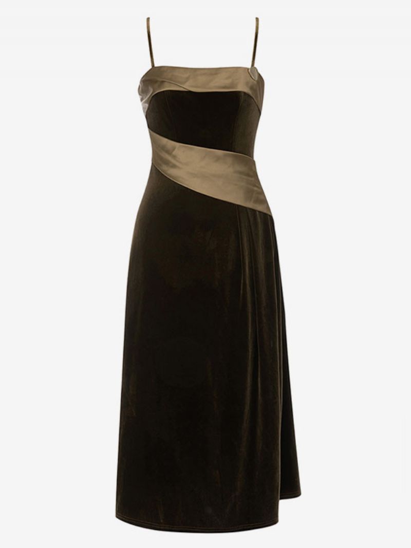 Damska Aksamitna Sukienka Na Studniówkę Spaghetti Bez Pleców Kontrastowe Sukienki Midi Imprezę