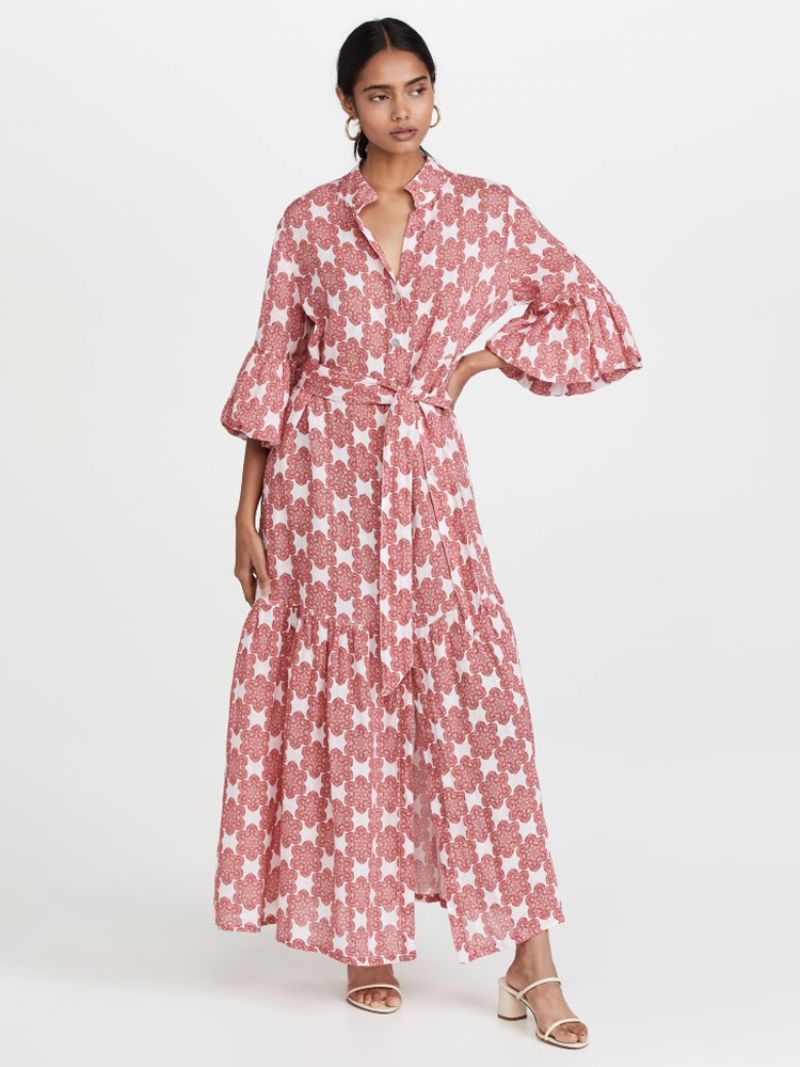 Damska Arbuzowa CZerwona Sukienka Boho Z Latarniowymi Rękawami Falbankami Na Co Dzień Sukienki Maxi
