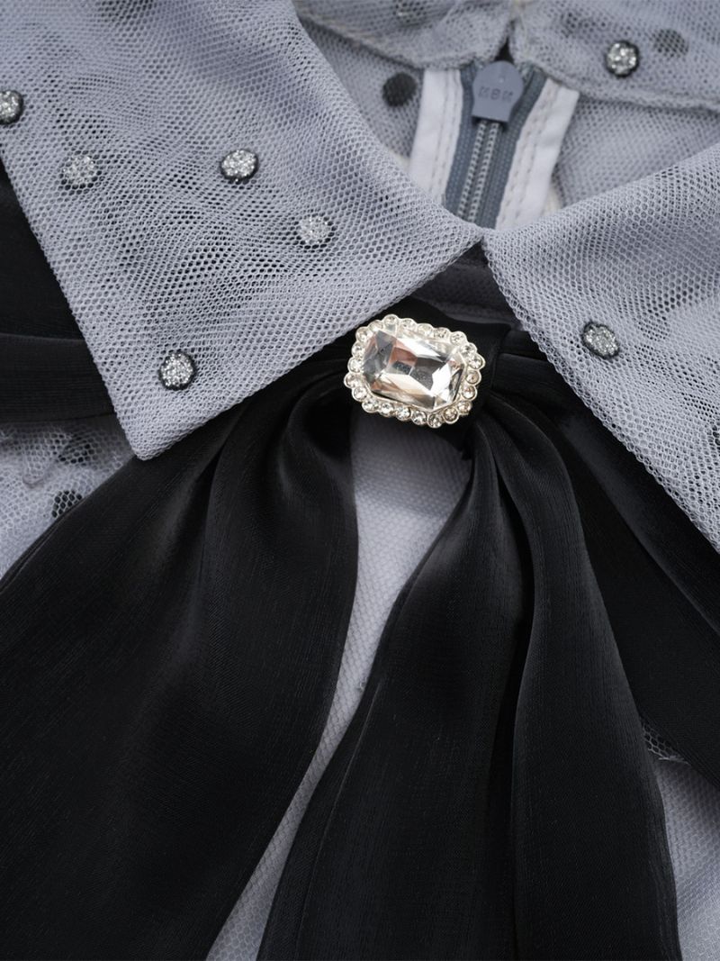 Damska CZarna Sukienka Warstwowa Z Wysokim Kołnierzem I Muszką W Kropki Party Maxi