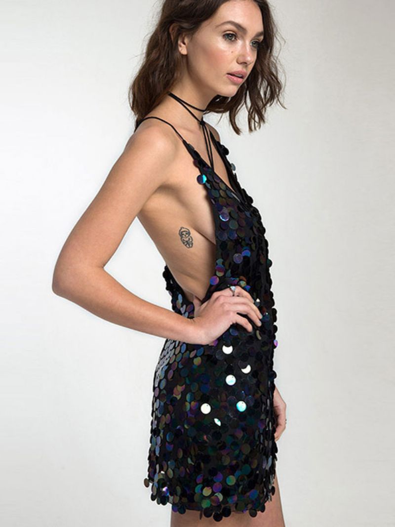 Damska Kolorowa Cekinowa Mini Sukienka Z Dekoltem W Kształcie Litery V Odkrytymi Plecami Seksowne Sukienki Na Przyjęcie Urodzinowe