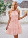 Damska Krótka Sukienka Halterowa Z Paskiem Wiązana Wielowarstwowa Letnia Codzienna Na Co Dzień