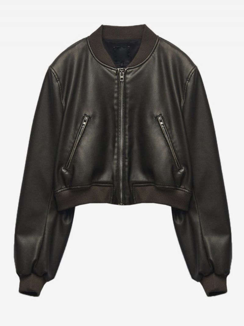 Damska Kurtka Z Biżuteryjną Szyją Skóra Pu