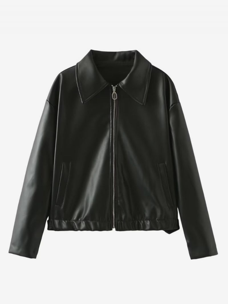 Damska Kurtka Ze Skóry Pu Z Kołnierzykiem I Zamkiem Błyskawicznym Długimi Rękawami Codzienne Kurtki
