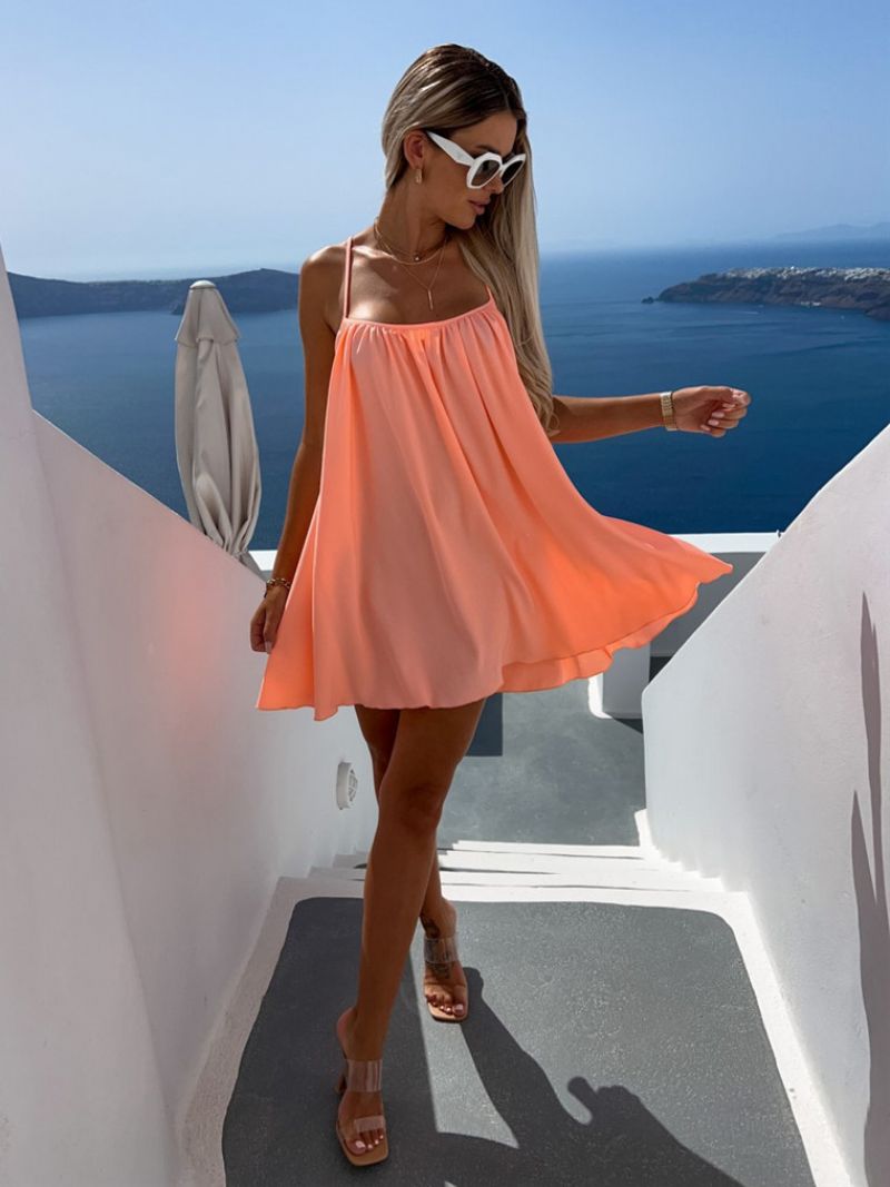 Damska Letnia Sukienka Na Ramiączkach Plisowana Bez Pleców W Kolorze Ecru Biała Plażowa O Długości Mini