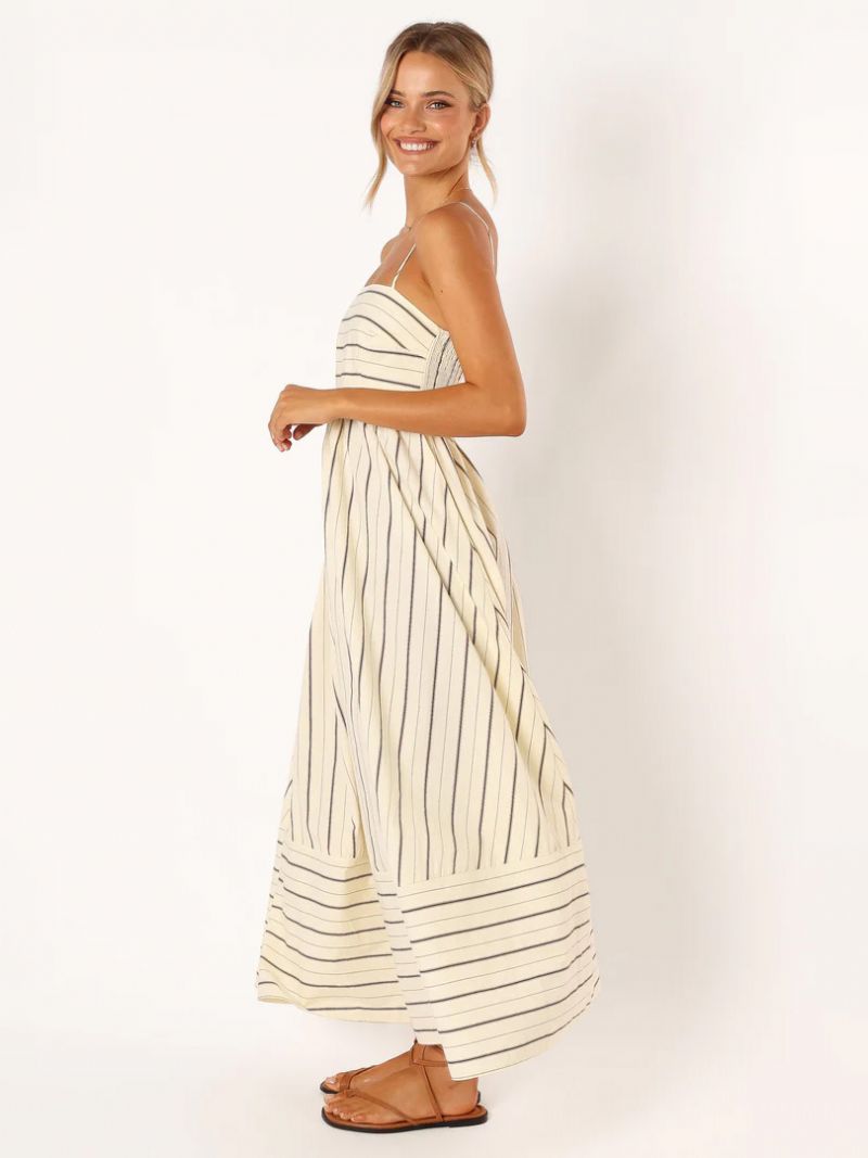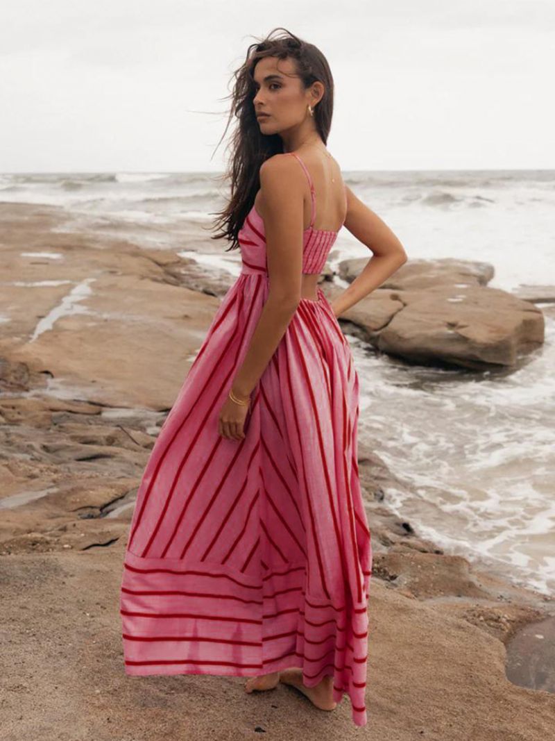 Damska Letnia Sukienka Z Ramiączkami Paskiem Na Szyi Wyciętymi Plecami Morelowa Długa Plażowa