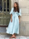 Damska Niebieska Sukienka Z Marszczeniem Wiązane Bufiaste Rękawy Sukienki Maxi Na Plażę