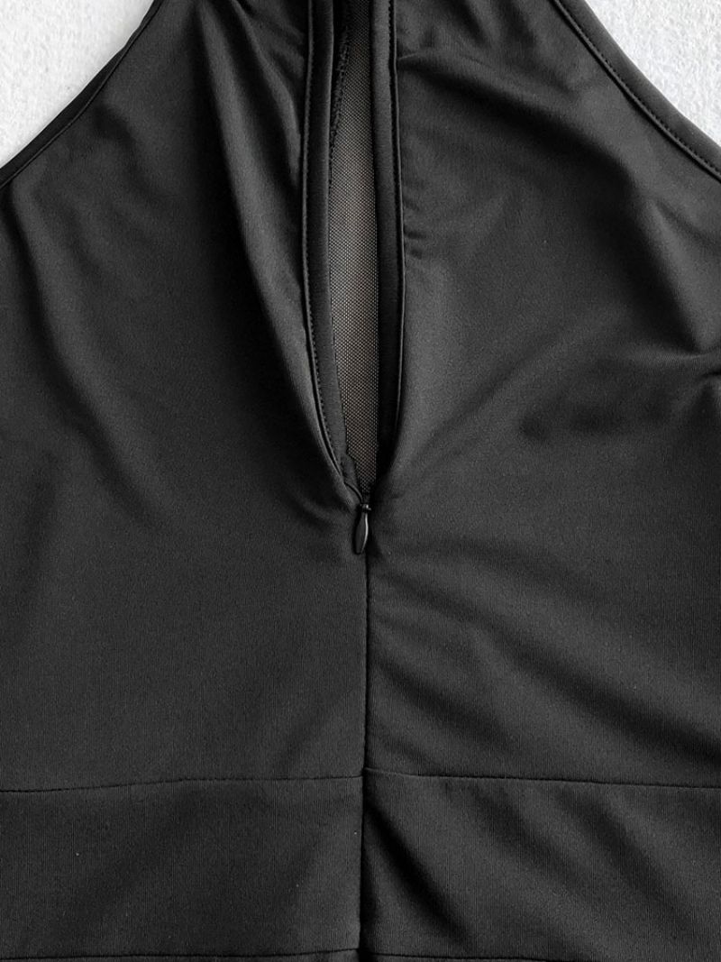 Damska Obcisła Sukienka CZarna Wiązana Na Szyi Plisowana Co Dzień Bez Rękawów Ołówkowa Sukienki