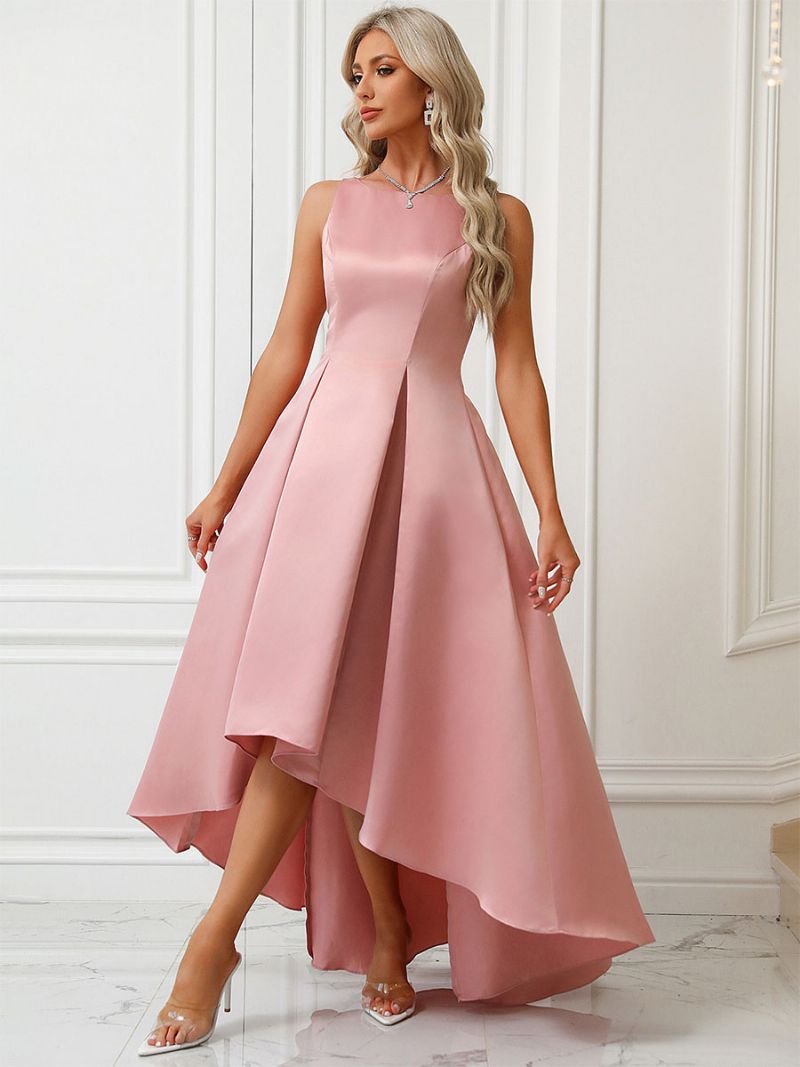 Damska Różowa Sukienka Maxi Bez Rękawów Z Dekoltem W Kształcie Litery V Wysokim I Niskim Marszczeniem Na Imprezę Balową