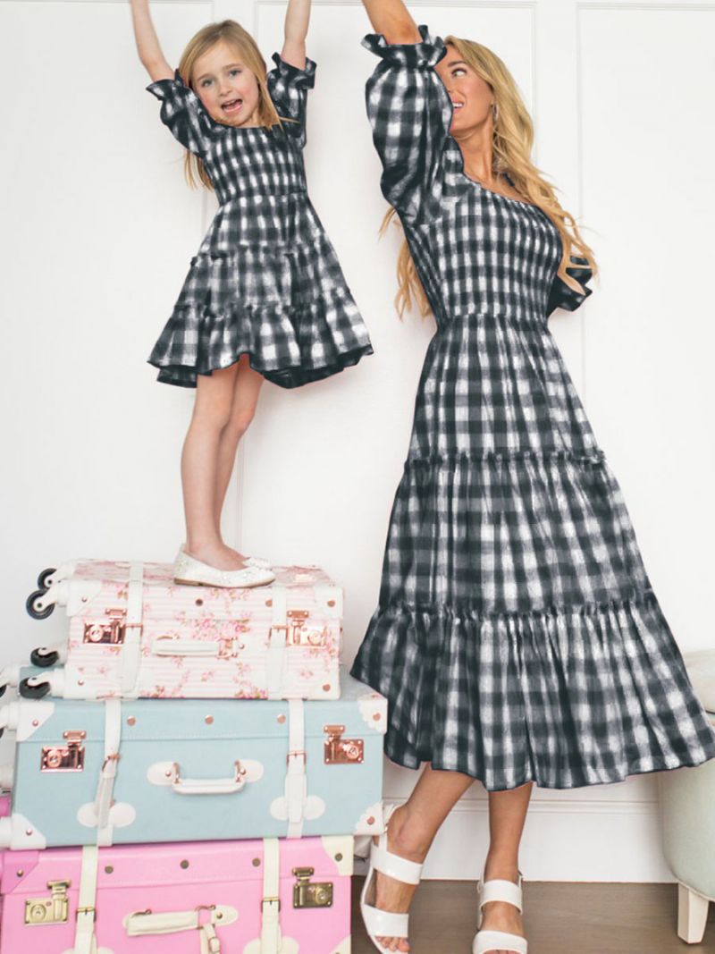 Damska Sukienka Barbie W Różową Kratkę Dla Rodziców I Dzieci Z Kwadratowym Dekoltem Kratę Średnia Letnia