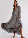 Damska Sukienka Boho Z Dekoltem W Szpic Długimi Rękawami I Kwiatowym Nadrukiem Sznurowana Letnia