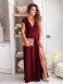Damska Sukienka Imprezowa Z Krótkim Rękawem Dekoltem W Kształcie Litery V Rozcięciem Talii Eleganckimi Sukienkami Maxi