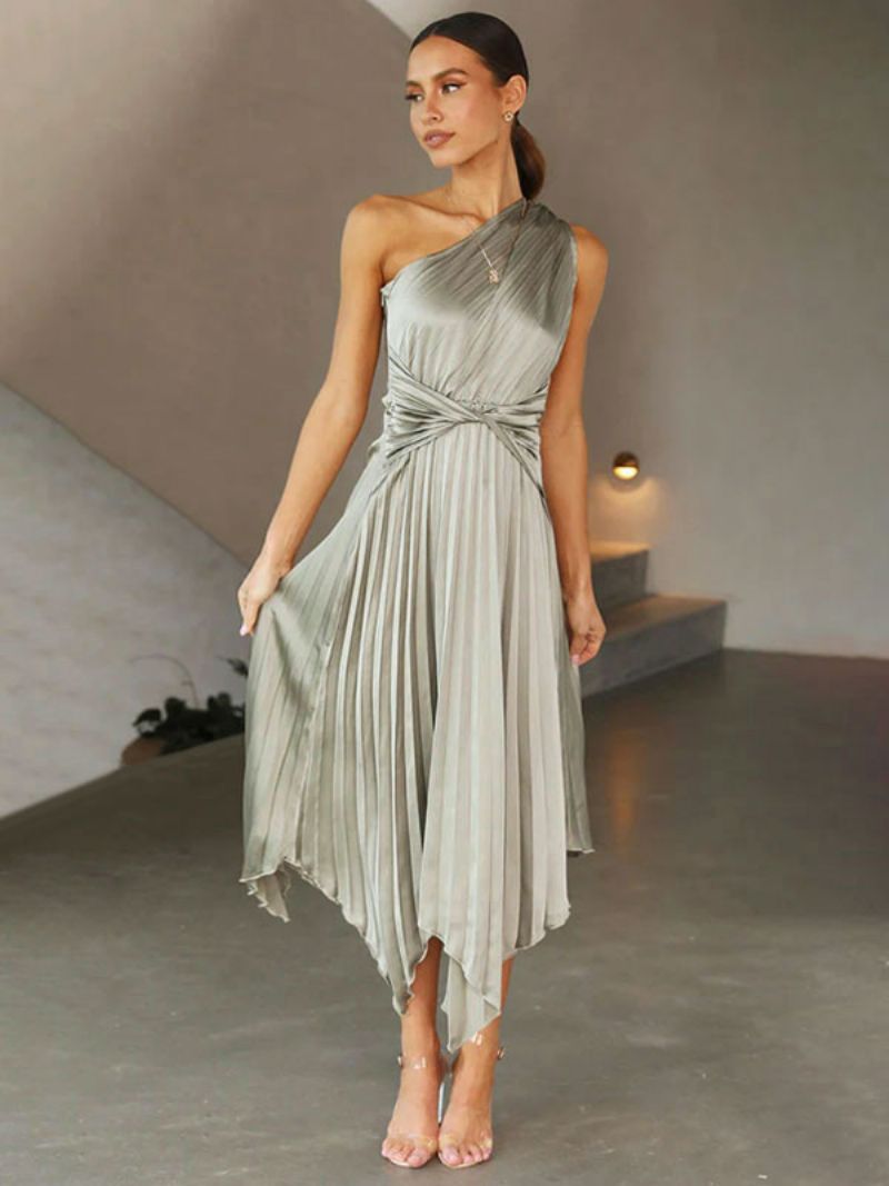 Damska Sukienka Maxi Na Jedno Ramię Bez Rękawów Co Dzień Do Podłogi