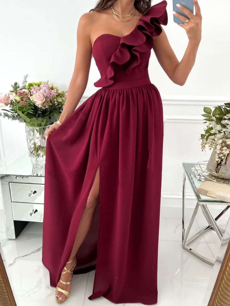 Damska Sukienka Maxi Na Jedno Ramię Bez Rękawów Z Niskim Rozcięciem I Długimi Sukniami Balowymi