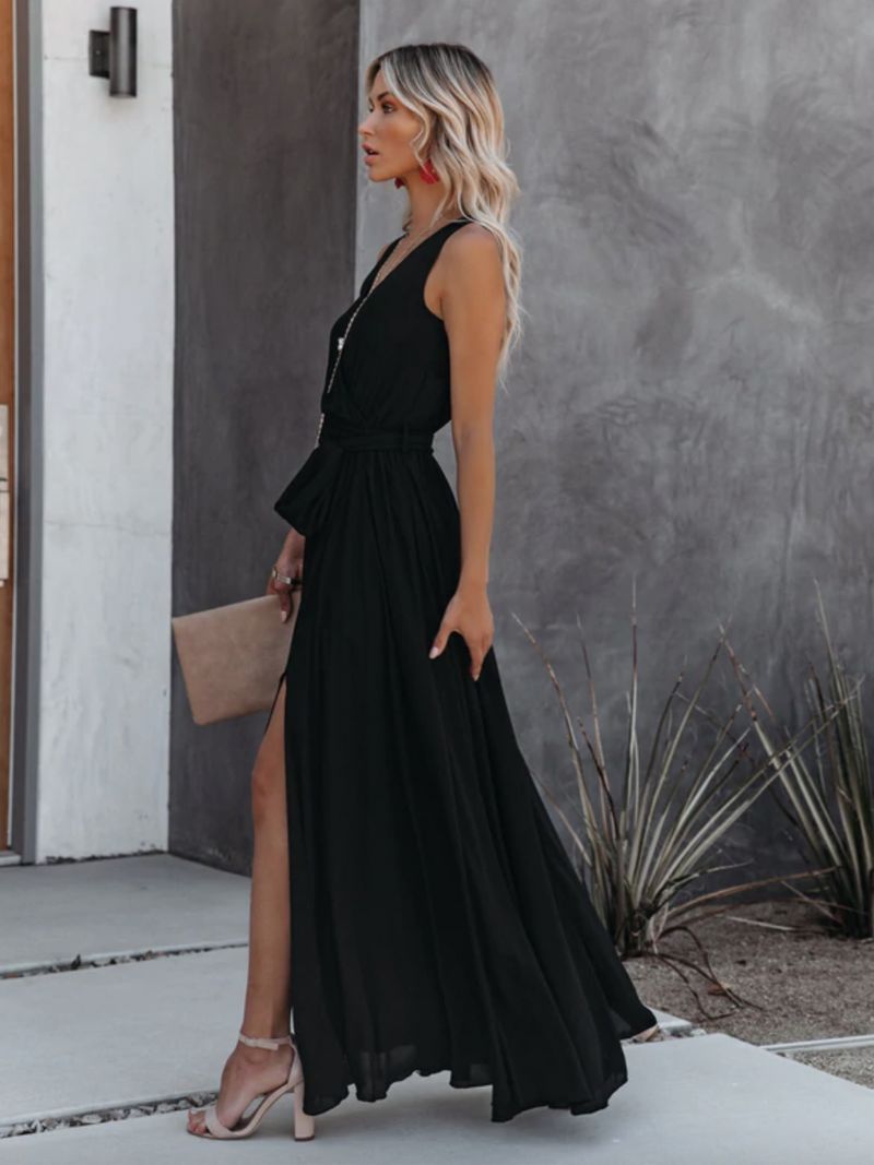 Damska Sukienka Maxi Z Dekoltem W Kształcie Litery V Długa Na Studniówkę Bez Rękawów