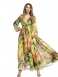 Damska Sukienka Maxi Z Dekoltem W Kształcie Litery V Długimi Rękawami I Nadrukiem