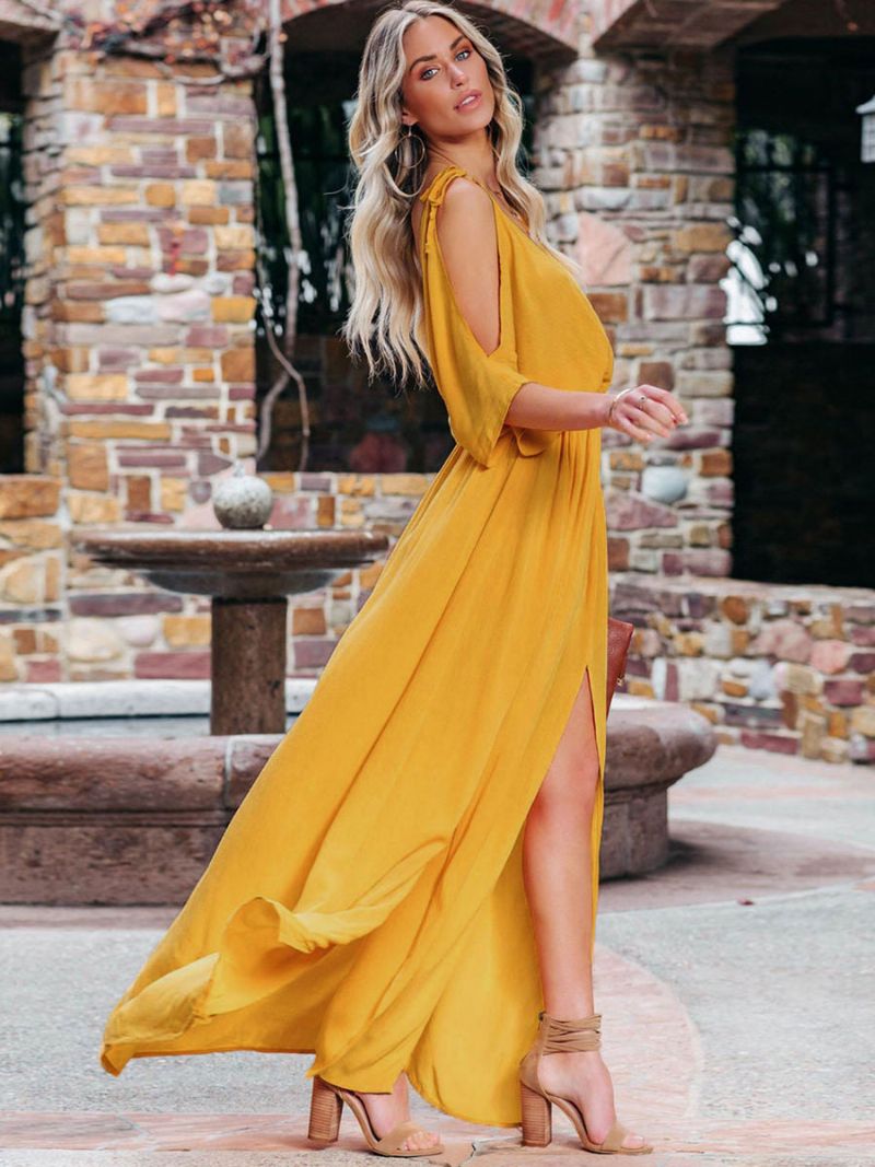 Damska Sukienka Maxi Z Dekoltem W Kształcie Litery V Odkrytymi Ramionami I Długością Do Podłogi