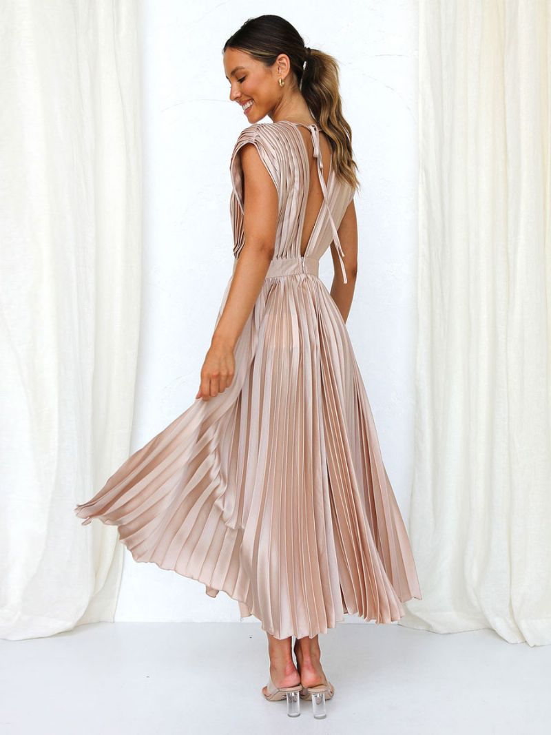 Damska Sukienka Midi Z Dekoltem W Kształcie Litery V Bez Rękawów Na Co Dzień Nadwymiarowe Plisowana Imprezę Studniówkę
