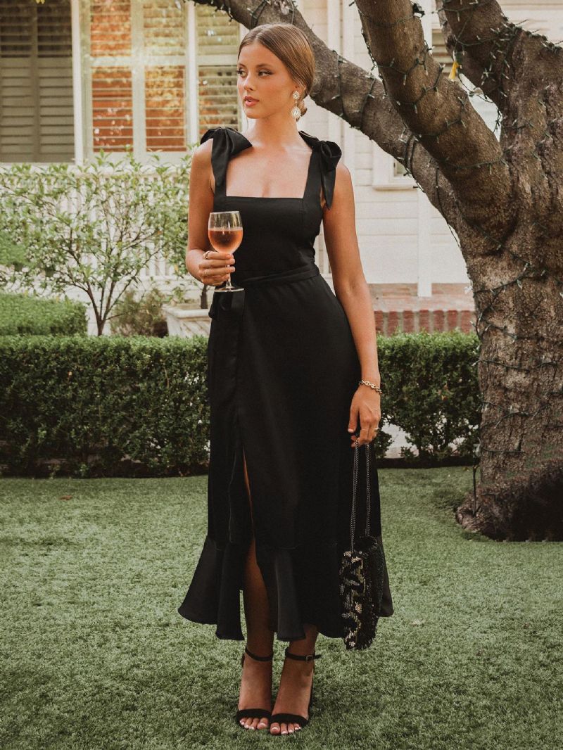 Damska Sukienka Midi Z Kwadratowym Kołnierzykiem I Rozcięciem Paskiem Na Przyjęcie Urodzinowe Dla Druhny