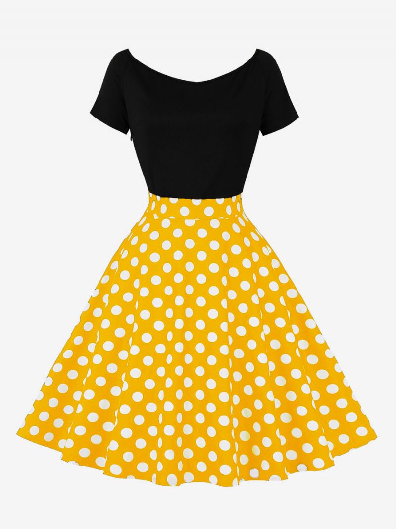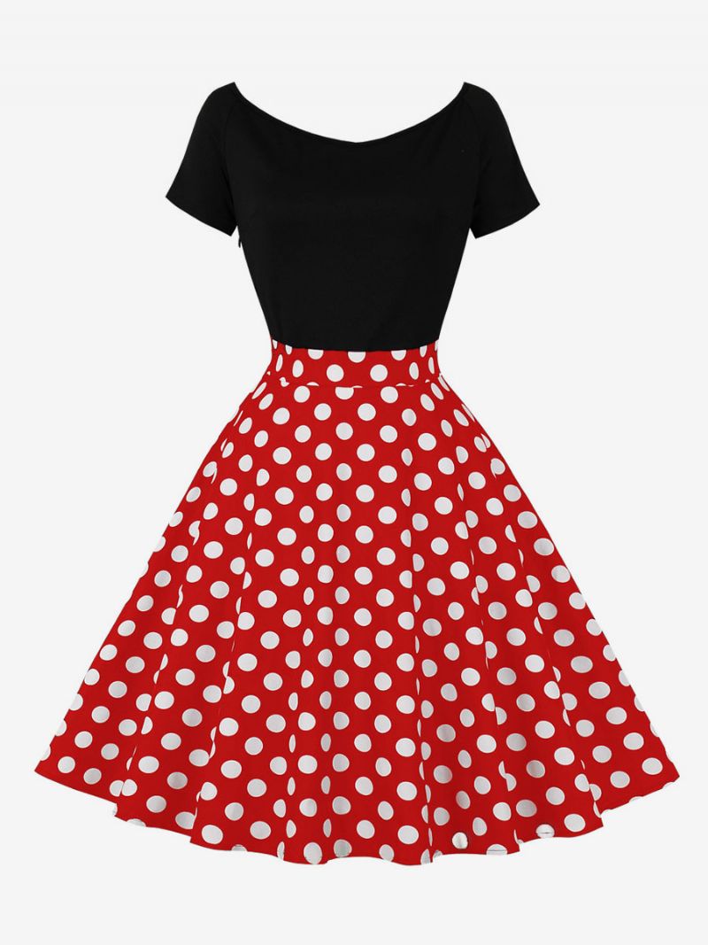 Damska Sukienka Retro Styl Audrey Hepburn Lata 50 Dekolt W Kształcie Biżuteryjnego Krótkie Rękawy Długość Do Kolan Kropki Rockabilly