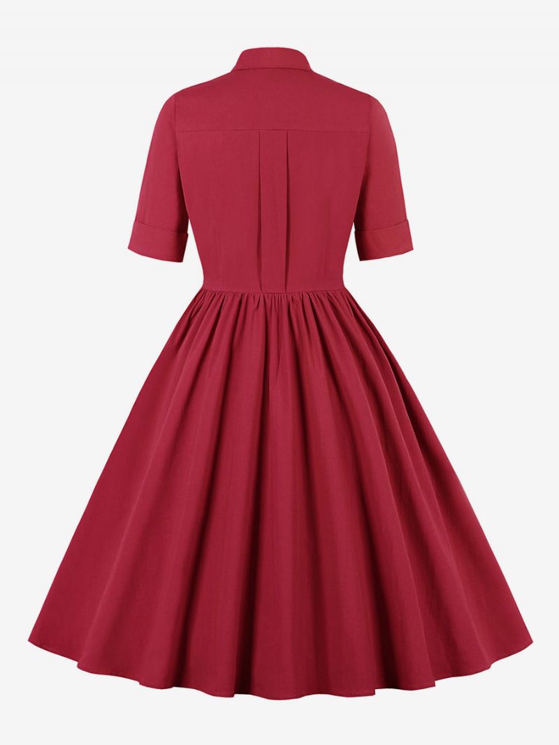 Damska Sukienka Retro Z Lat 50 Xx W Stylu Audrey Hepburn CZarna Krótkimi Rękawami I Kołnierzykiem Rozkloszowana