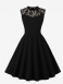 Damska Sukienka Retro Z Okrągłym Dekoltem Koronką Lat 50 W Stylu Audrey Hepburn Bez Rękawów Do Kolan CZarna Rockabilly