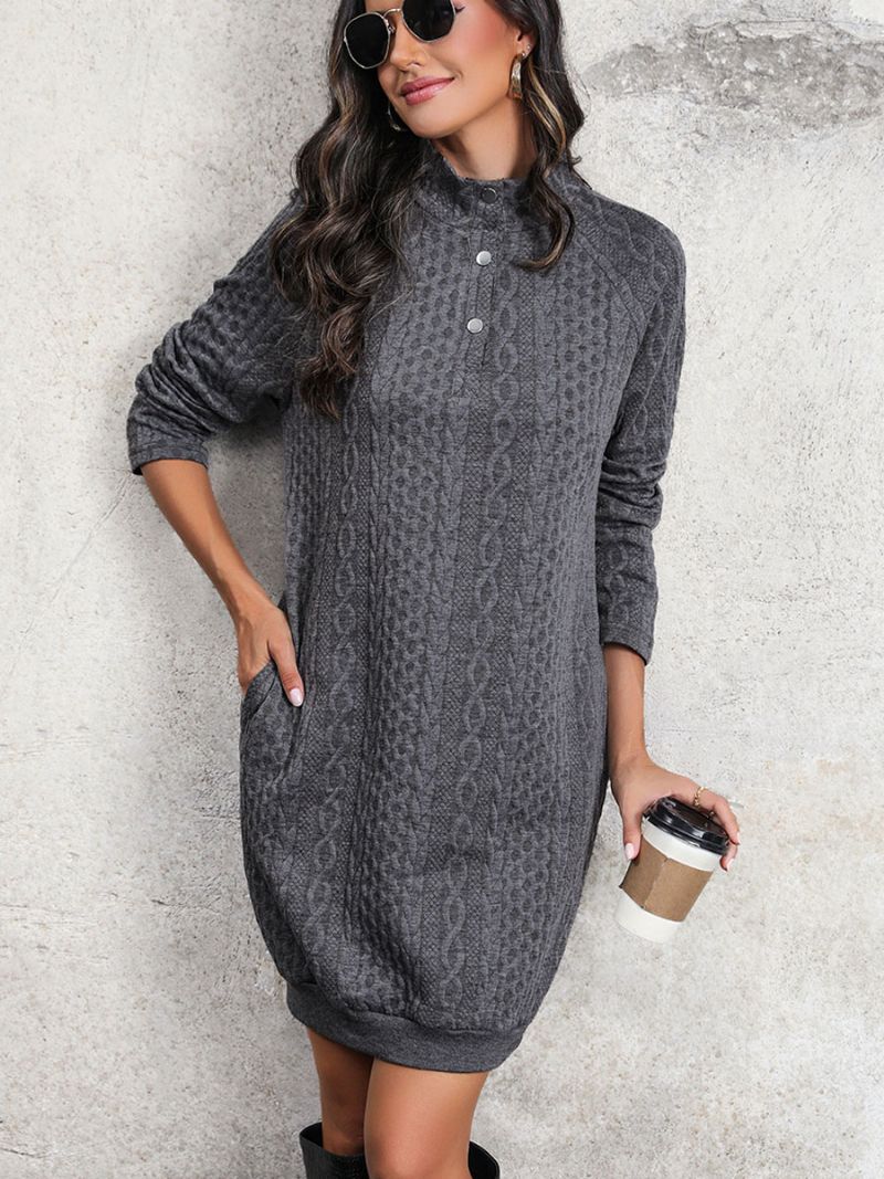 Damska Sukienka Sweterkowa Ze Stójką Długimi Rękawami Mini Sukienki Z Dzianiny Warkoczowej