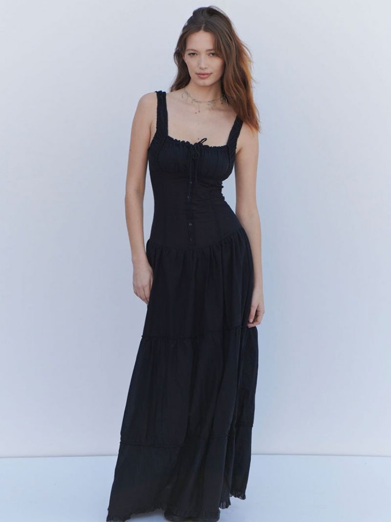Damska Sukienka W Stylu Boho Paski Spaghetti Dekolt Bez Rękawów Nieregularne Marszczenia Letnia