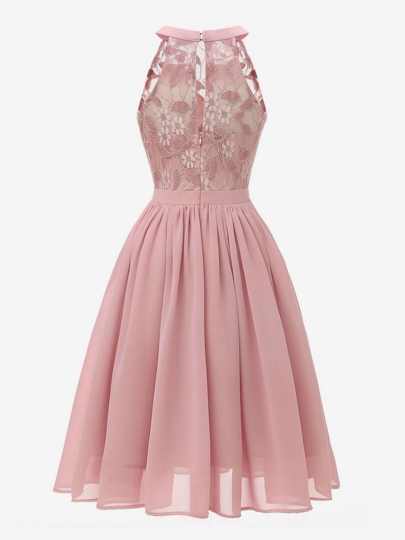 Damska Sukienka W Stylu Retro Z Lat 50 Audrey Hepburn Różowa Bez Rękawów Dekoltem Kształcie Klejnotu Koronkowa Rozkloszowana