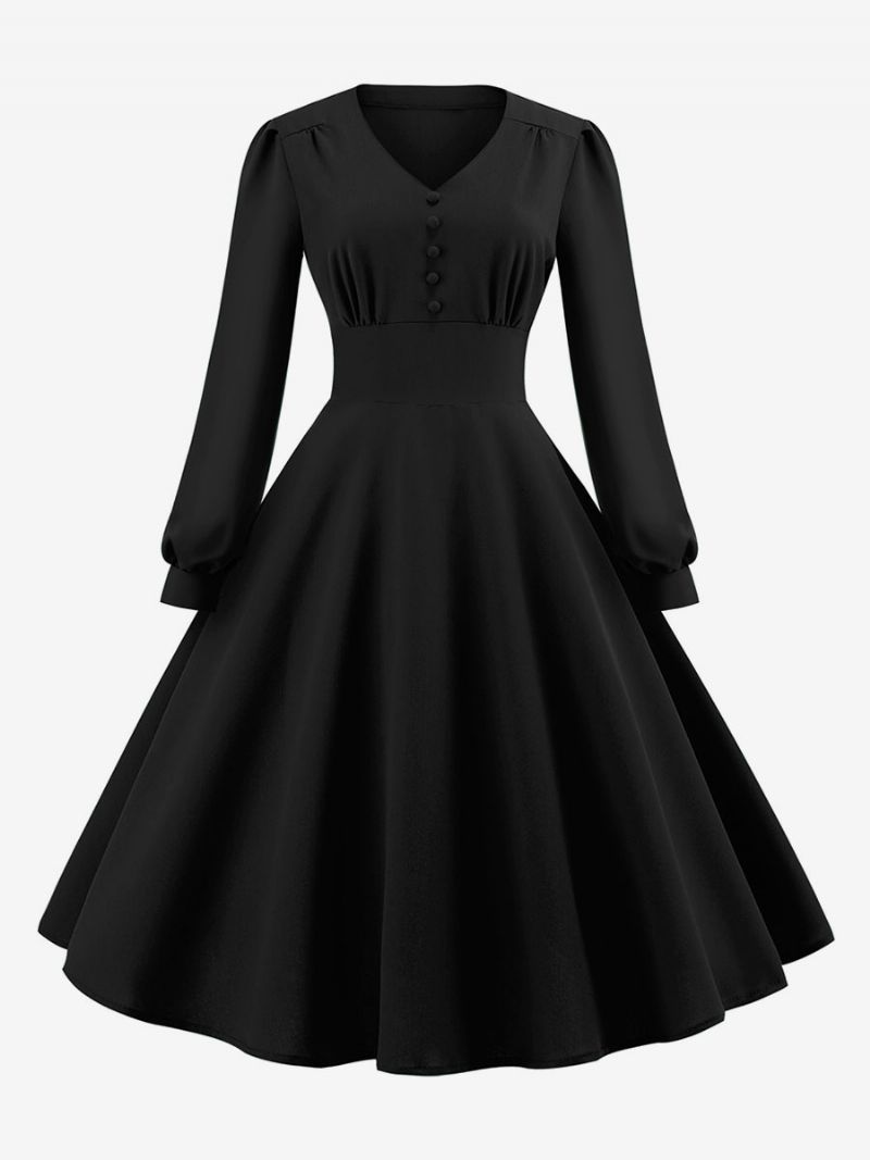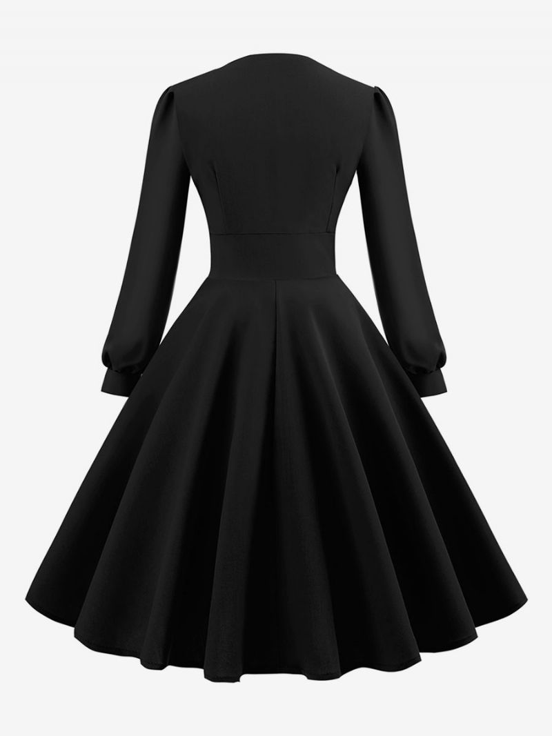 Damska Sukienka W Stylu Vintage Z Lat 50 Xx Audrey Hepburn Dekoltem Kształcie Litery V Warstwowymi Długimi Rękawami Średnia Typu Swing