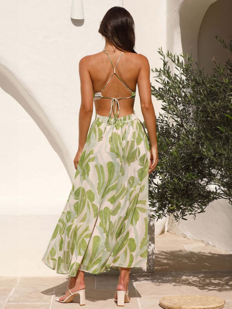 Damska Sukienka Z Nadrukiem Wycięciem Typu Halter Odkrytymi Plecami Letni Kurort Swobodne Sukienki Midi