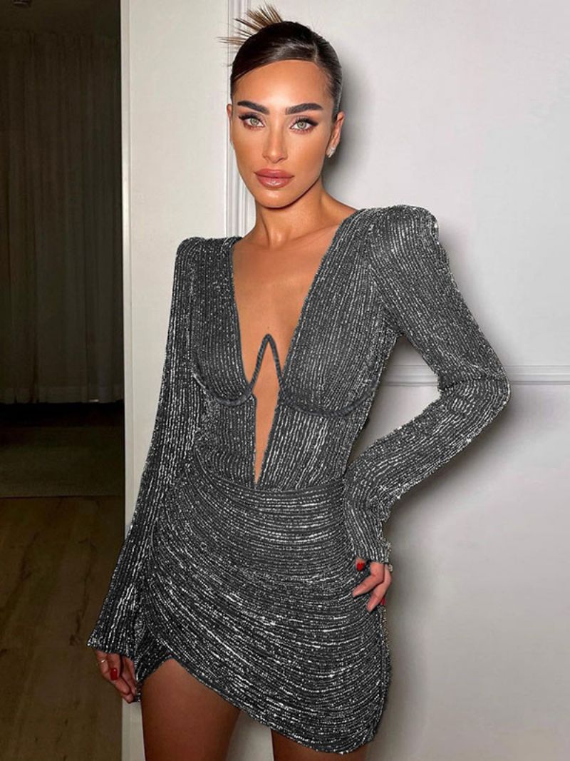 Damska Teksturowana Mini Sukienka Z Głębokim Dekoltem I Sztuczną Kopertową Spódnicą Marszczone Sukienki Na Przyjęcie Urodzinowe