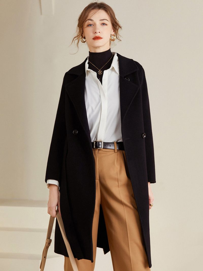 Damski Płaszcz Kopertowy 100% Wełna Zimowa Odzież Wierzchnia 2024