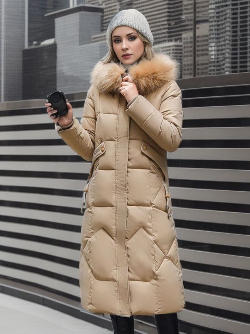 Damski Płaszcz O Przedłużonym Fasonie Z Kapturem I Zamkiem Błyskawicznym Wysokiej Jakości Swobodna Zimowa Odzież Wierzchnia