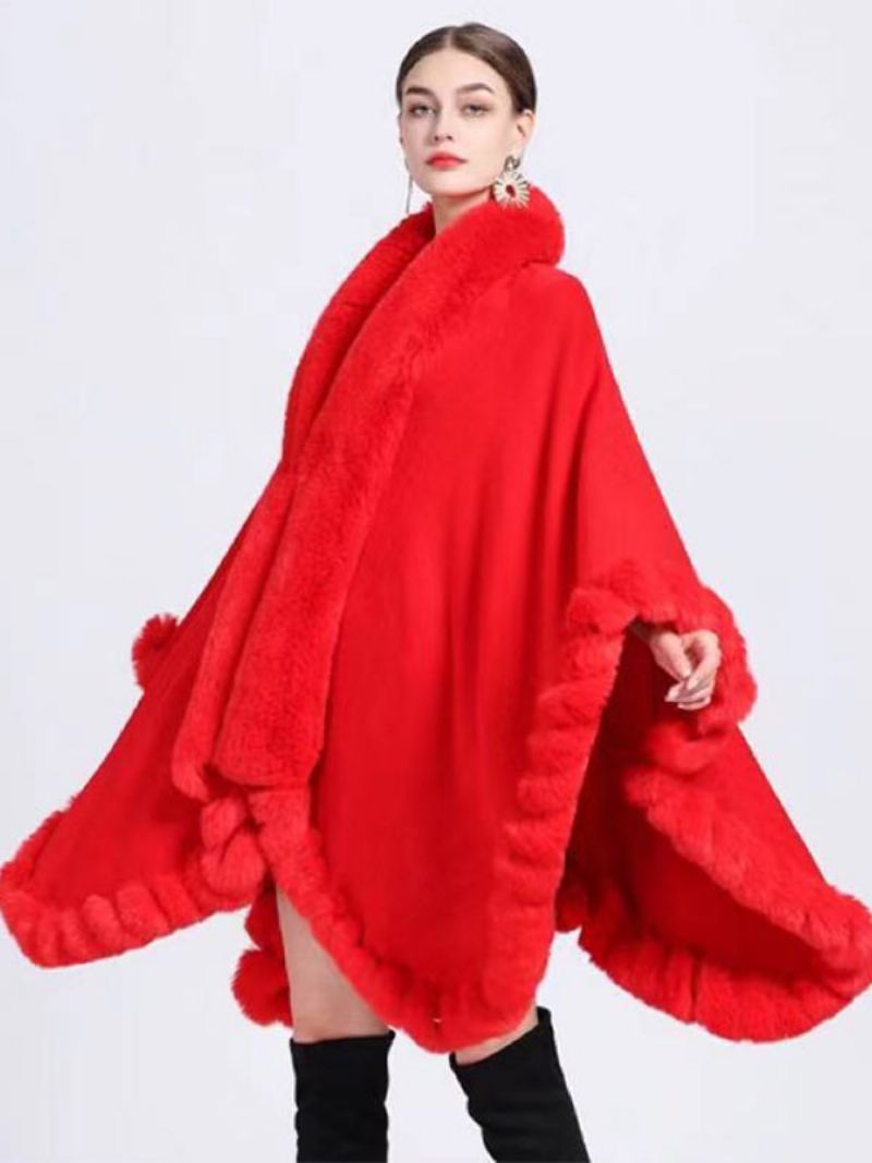 Damski Płaszcz Poncho Ze Sztucznego Futra Peleryna Zimowa Odzież Wierzchnia 2024