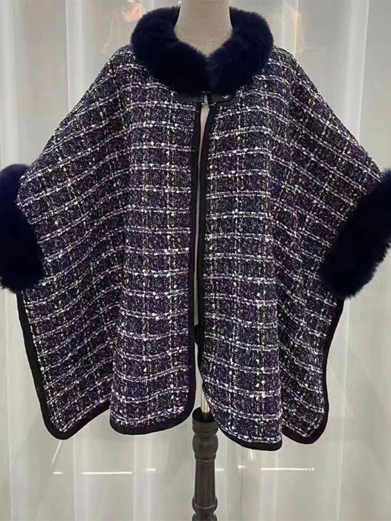 Damski Płaszcz Ponczo W Kratę Cape Wiosenna Odzież Wierzchnia 2024